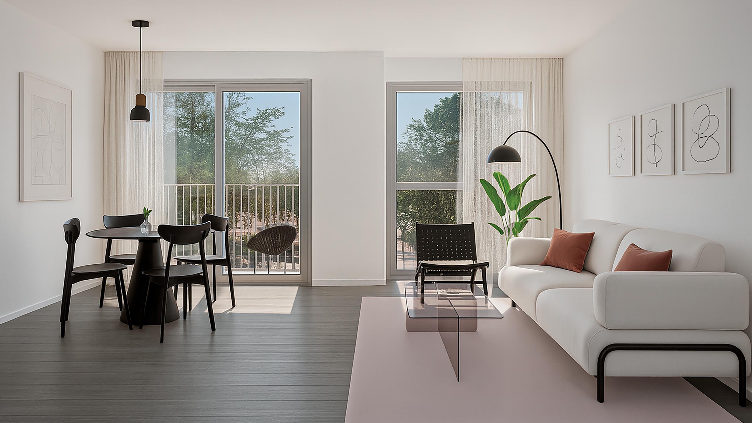 El residencial está compuesto por viviendas de 1 y 2 dormitorios, diseñadas para ofrecer luminosidad, eficiencia, orientación hacia los espacios verdes del entorno y complementadas con zonas comunes que refuerzan su atractivo tanto para uso residencial como para alquiler.